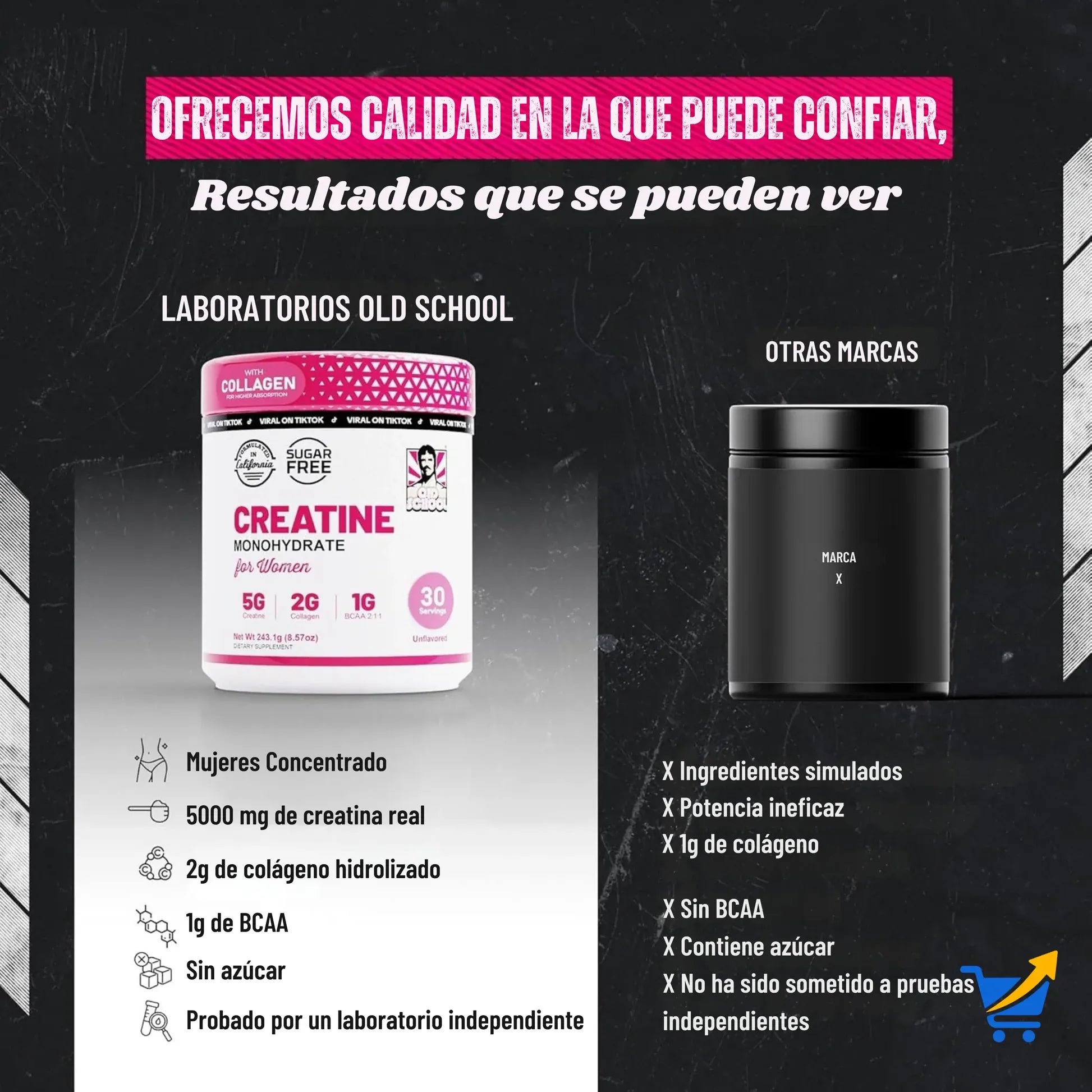 La mayoría de las creatinas ignoran las necesidades estéticas de la mujer. En Old School Labs hemos creado una fórmula diseñada para que no tengas que elegir entre rendimiento y belleza.